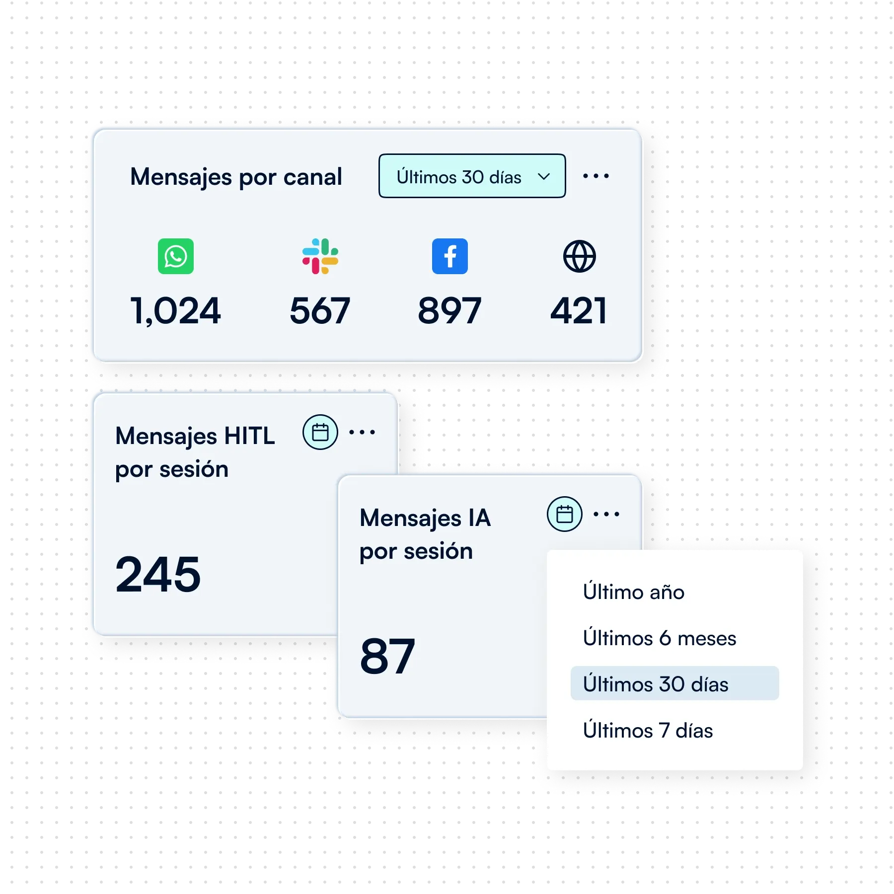 Obtén insights valiosos sobre el rendimiento de tu chatbot y el comportamiento de tus clientes.